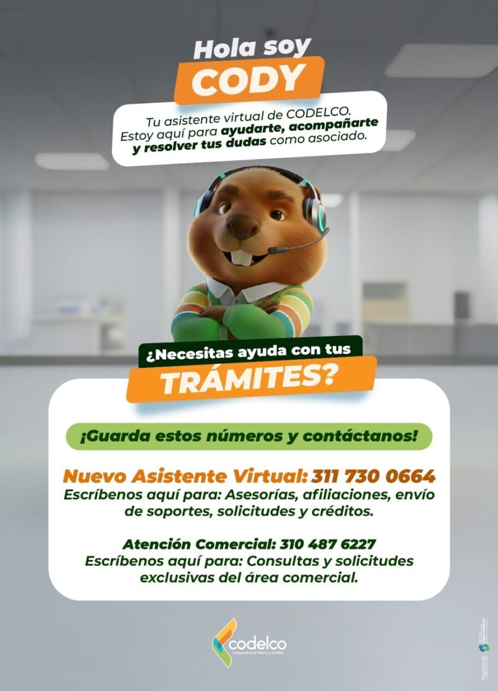 El Consejo de Administración de la Cooperativa de Ahorro y Crédito CODELCO en uso de las atribuciones que le confiere la Ley 79 de 1988 y el Estatuto de esta, Convoca a Asamblea General Ordinaria de Delegados para el día Veintiocho (28) de marzo de 2026 a la 10:00. a.m. en la terraza del Edificio Meridian, ubicada en Calle 5ª #43 B 25, El Poblado – Medellin